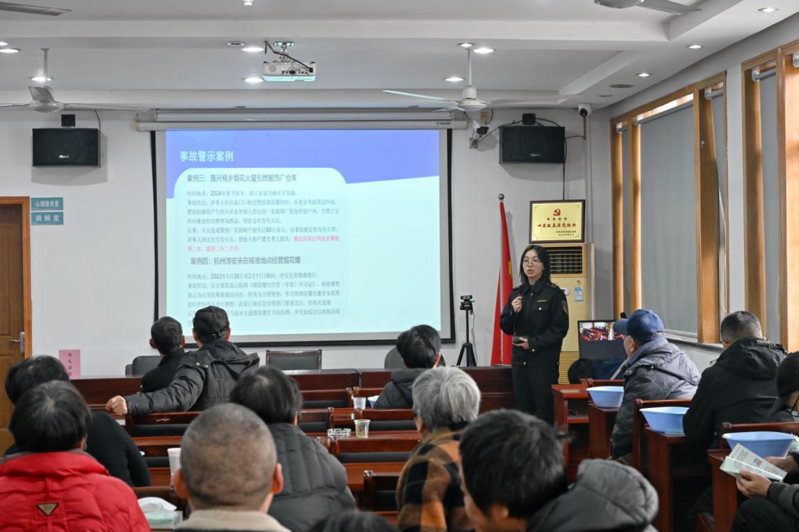 執(zhí)法人員在岐西村宣傳煙花爆竹安全知識