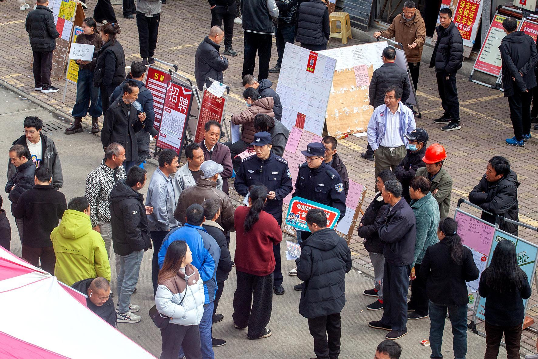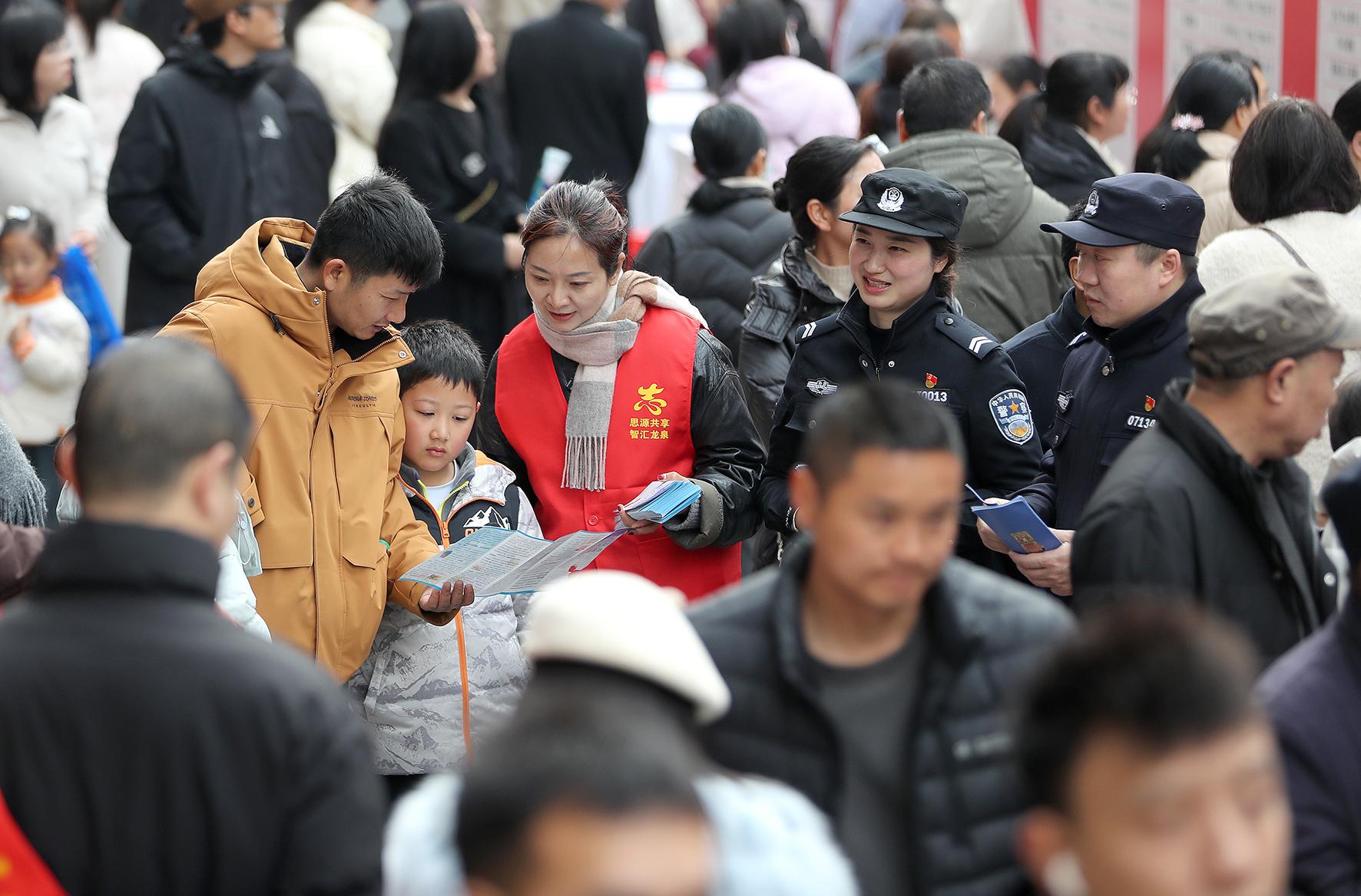 2月27日,在湖北省荊門(mén)市東寶區(qū)“春風(fēng)行動(dòng)”招聘會(huì)現(xiàn)場(chǎng),荊門(mén)市公安局東寶區(qū)分局民警聯(lián)合龍泉街道禁毒志愿者,帶著禁毒宣傳手冊(cè)、仿真毒品模型,向求職者開(kāi)展禁毒普法宣傳。